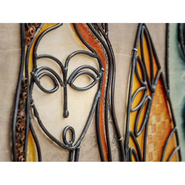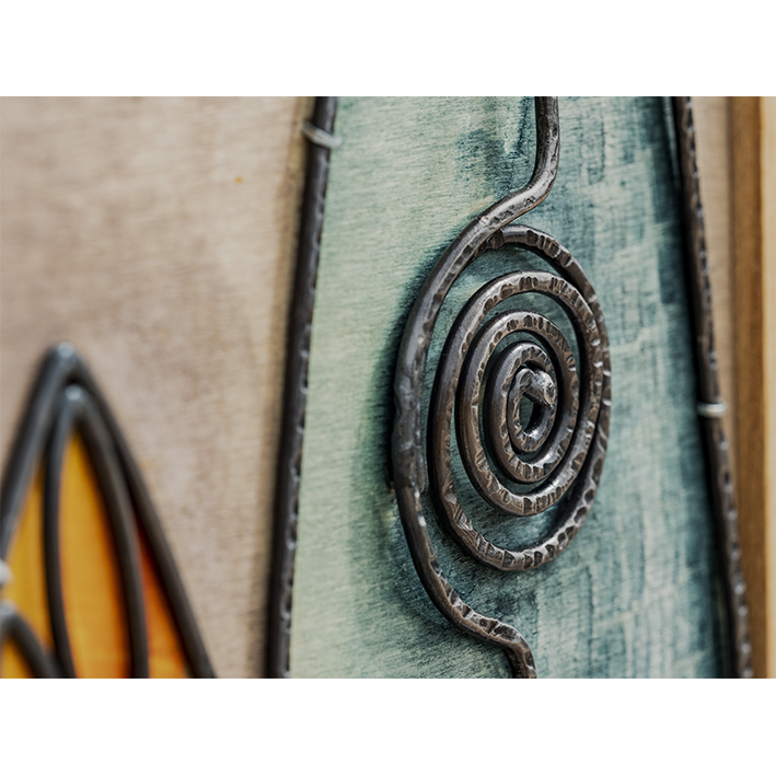 TECNICA E MATERIALI: texturizzazione del legno, cesellatura, saldatura ossioacetilenica, ferro, legno, rame, colori all’anilina.