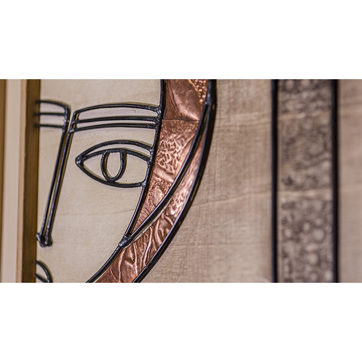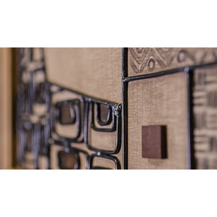 Stati d’animo – Desiderio (54 x 64 cm) TECNICA E MATERIALI: texturizzazione del legno, cesellatura, saldatura ossioacetilenica, ferro, legno, rame, colori all’anilina. ANNO: 2023