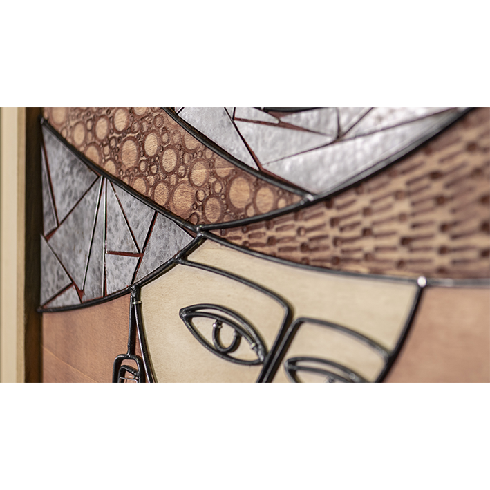 Stati d’animo – Speranza (54 x 64 cm) TECNICA E MATERIALI: texturizzazione del legno, cesellatura, saldatura ossioacetilenica, ferro, legno, colori all’anilina. ANNO: 2023